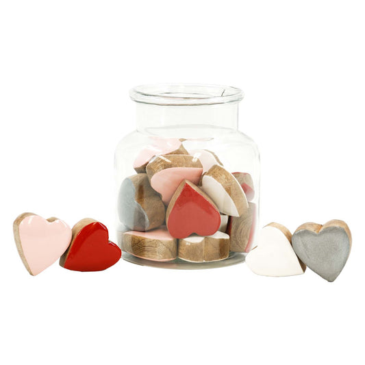 Set of 20 Pink, White, Red, and Silver Little Wood Hearts in Jar